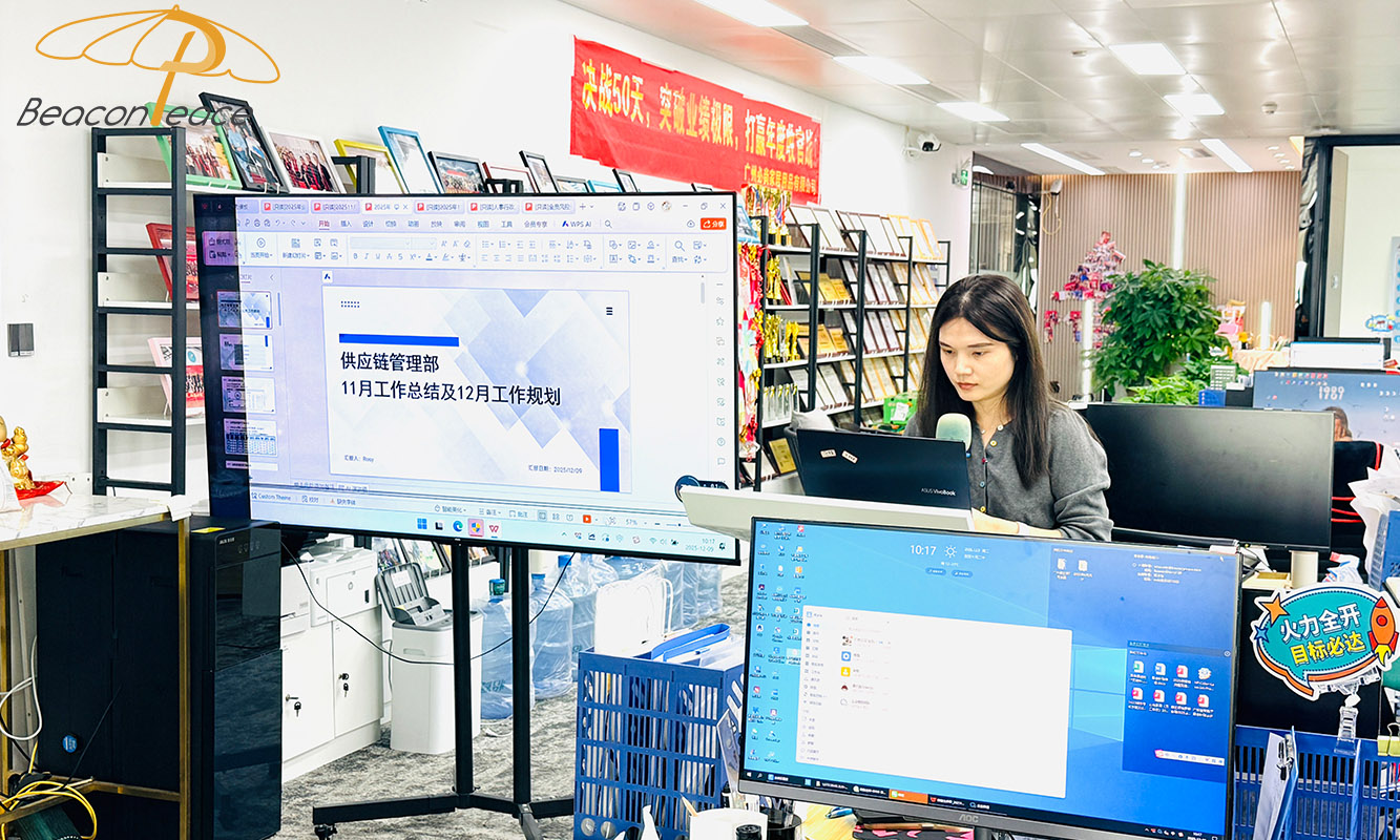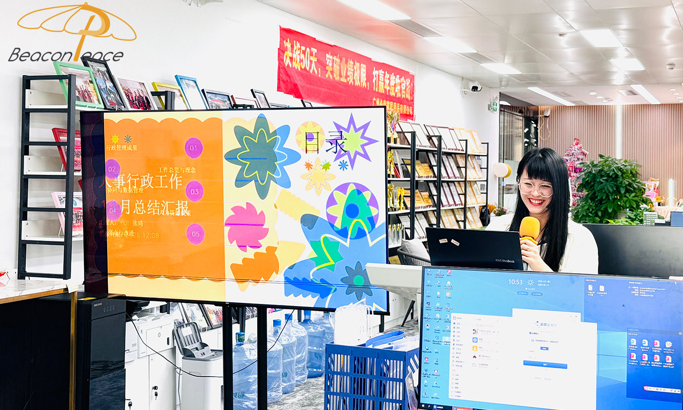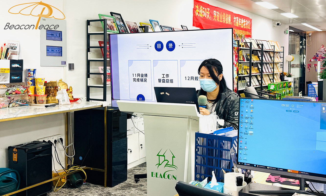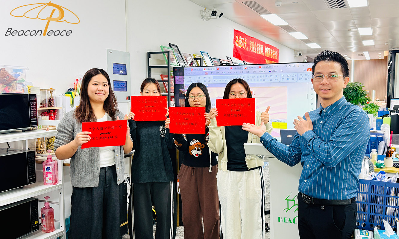 At the beginning of the conference, the company proudly recognized the outstanding sales representatives who achieved exceptional results in November. These top-performing sales representatives each came to the stage to receive their awards, presented personally by Sam, the General Manager of Beacon Peace. They represent not only individual excellence but also the spirit of teamwork and the company's values. Behind each award winner lies a story of hard work and dedication from the entire company team. These achievements reflect their professionalism in sales and their unwavering perseverance in the face of challenges.