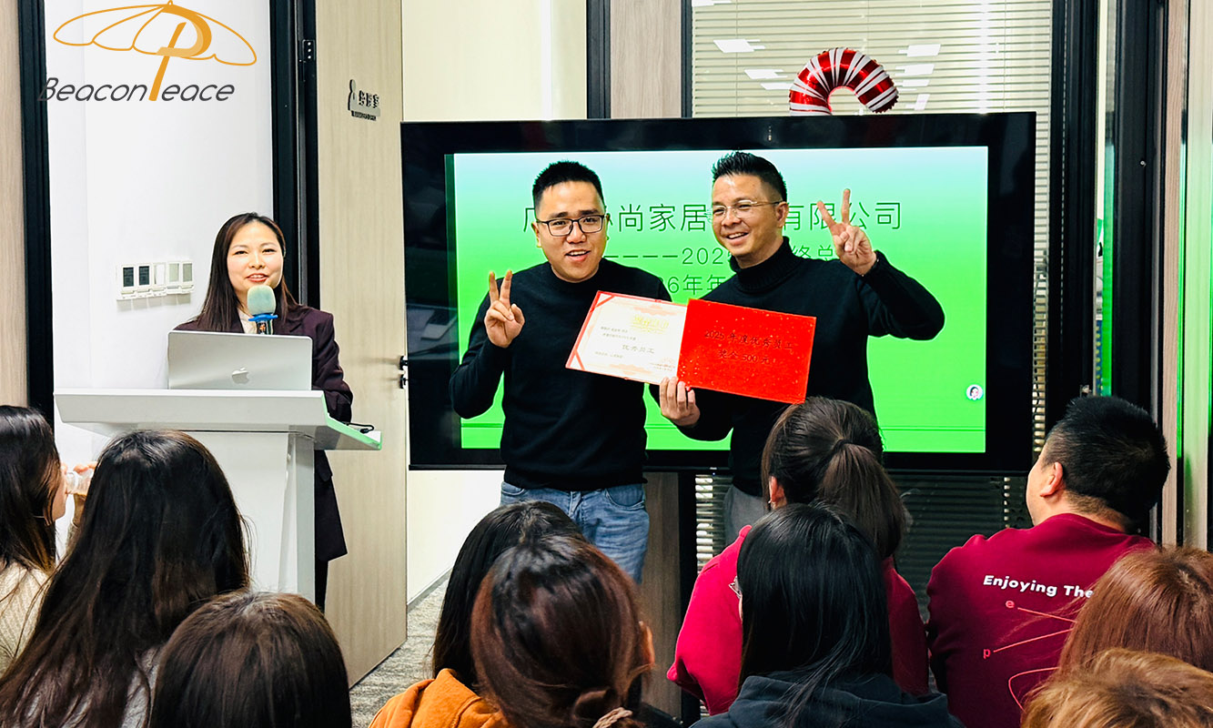 The conference ended successfully with warm applause. At the end of the meeting, Sam also sent his sincere blessings to all customers, thanked them for their continued support and trust in Beacon Peace outdoor furniture, and looked forward to continuing to work together to achieve great results in the new year. I hope everyone will be healthy, happy and prosperous in 2026!
