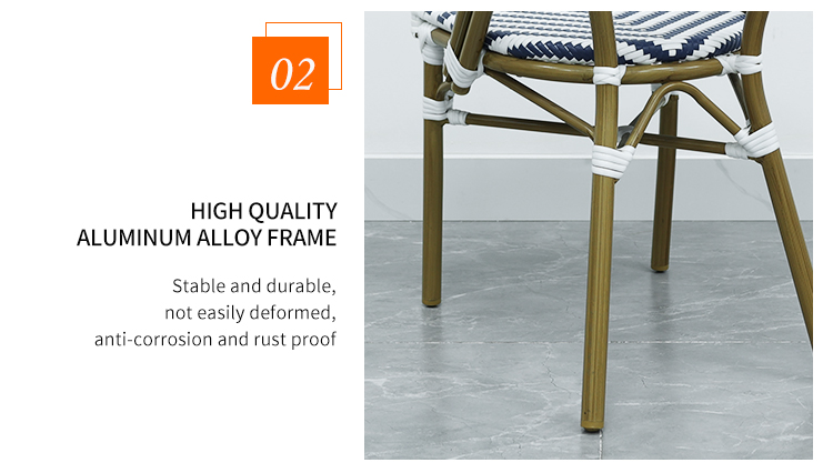 BP3227 French Style Outdoor Rattan Dining Chair Garden Furniture Patio Aluminium Frame French Bistro Coffee Chair for Cafe最小起订量 :